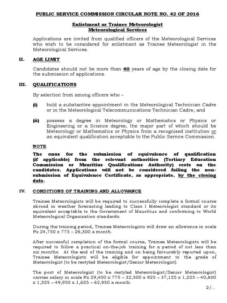 Post Of Trainee Meteorologist Meteorology Academic Degree